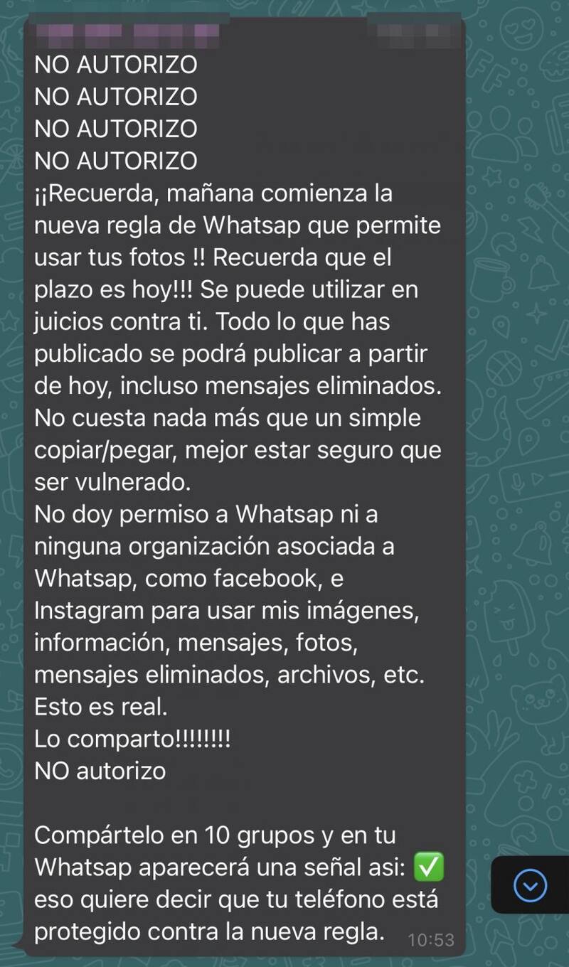 Una de las grandes fake news es que WhatsApp cobrará dinero si no reenvías un mensaje participar a 10 contactos o más, algo que realmente no hace la compañía. Este servicio de mensajería nunca realizará una cadena, es algo que rechazan.
