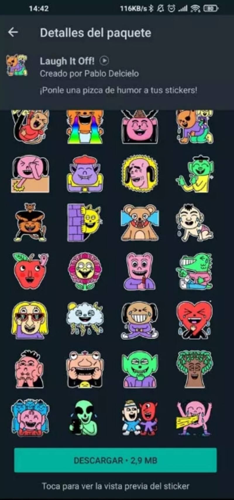 Para descargar el contenido de WhatsApp, el usuario debe ir a la aplicación, sección de stickers y luego abrir la pestaña correspondiente. Si aún no se actualiza, tiene que ingresar directamente a la web https://wa.me/stickerpack/LaughItOff para obtener este servicio gratuito.