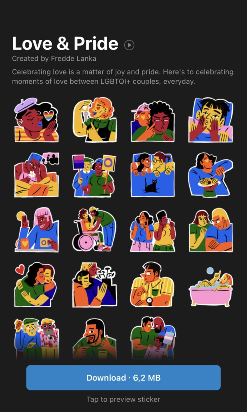 "Celebrar el amor es cuestión de alegría y orgullo. Estamos aquí para celebrar los momentos de amor entre parejas LGBTQI +, todos los días", anunció la aplicación a través de un mensaje acerca del nuevo pack de stickers.