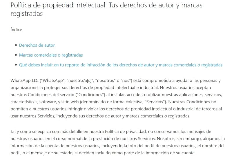 La primera razón por la WhatsApp puede cerrar una cuenta o eliminarla es por incumplir los términos y condiciones de la App, las llamadas "Políticas de Propiedad Intelectual".
