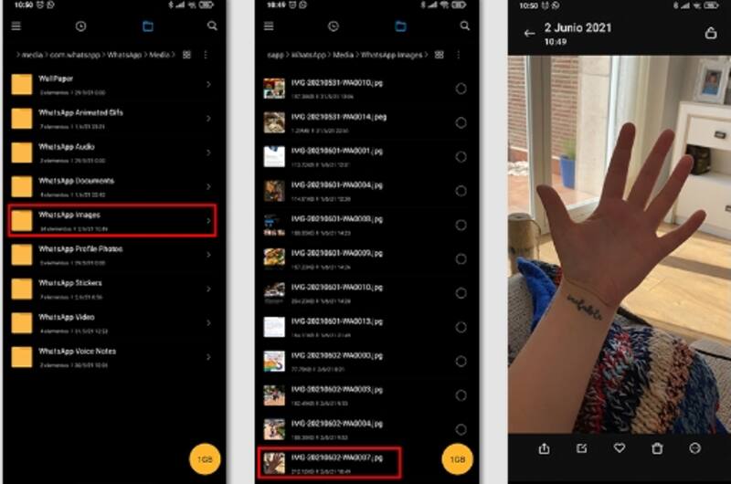 La clave para la realización de este truco es la carpeta en la que WhatsApp almacena los archivos multimedia, lugar en el que crea diversas subcarpetas. Al recibir un contenido, antes que el usuario abra la App, puede ir directamente a esa dirección y encontrar lo enviado.