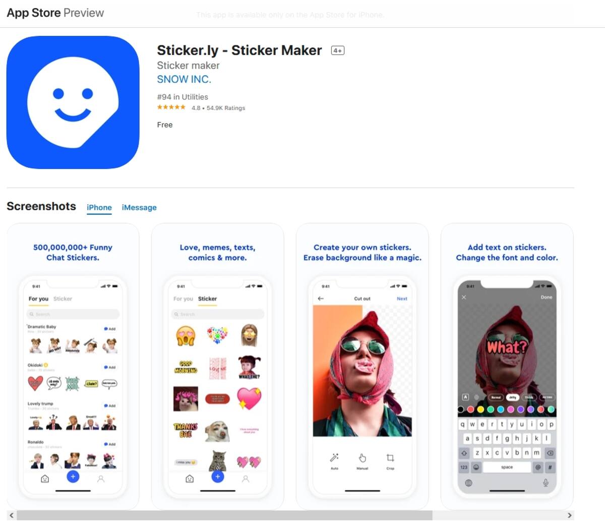 - Stickers.ly: Su gran servicio es la creación de stickers, pero también tiene un amplio catálogo para la descarga de ellos. Además, muchos de ellos son compatibles con otras Apps, como Snapchat y Telegram. Disponible en App Store.