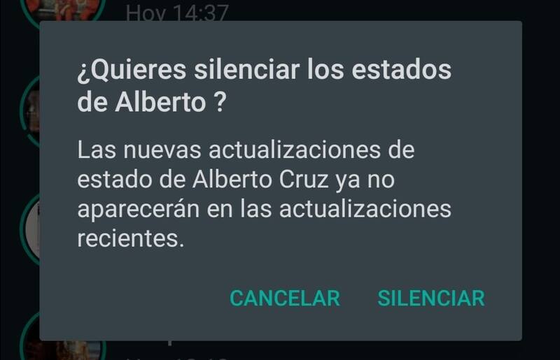 - Con eso, WhatsApp cargará una ventana en la que indicará si el usuario quiere silenciar o no el estado de algún contacto en particular.