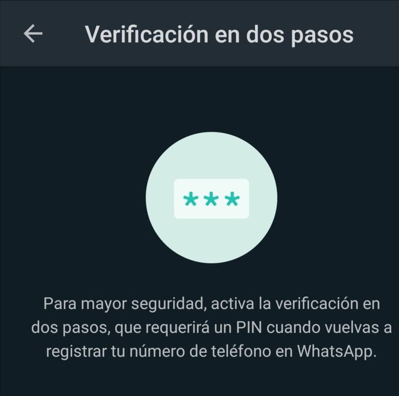 - Activar la autenticación de dos factores: autentificar la cuenta de WhatsApp mediante dos pasos para proteger la cuenta.