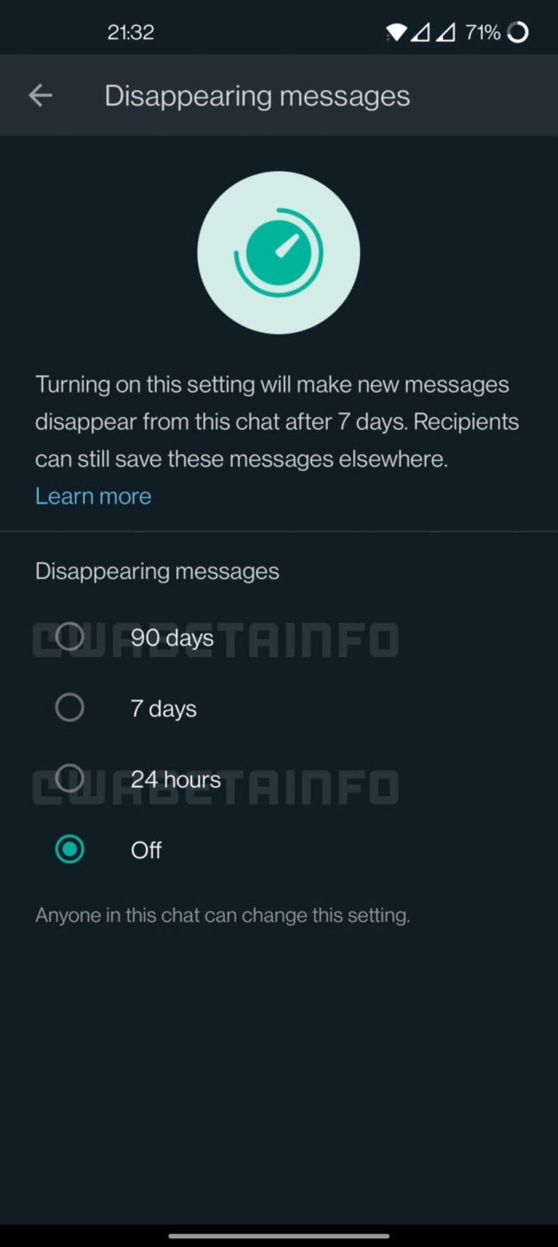 Esta función de la app de mensajería llegará pronto a WhatsApp beta, aunque sin una fecha establecida, pero quizás en una próxima actualización del servicio de comunicación. La nueva característica agregó a los 90 días como tiempo a que un mensaje esté disponible en WhatsApp.