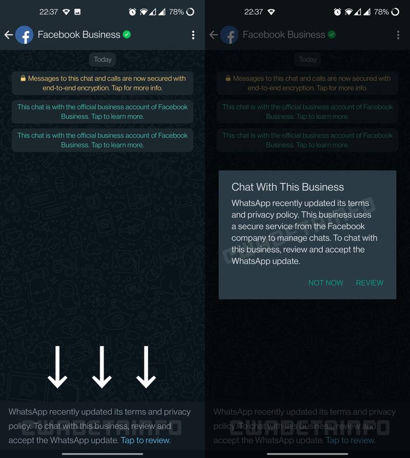 De acuerdo a WaBetaInfo, la actualización del servicio de mensajería informará que se puede usar la plataforma, pero sin aceptar las nuevas condiciones.