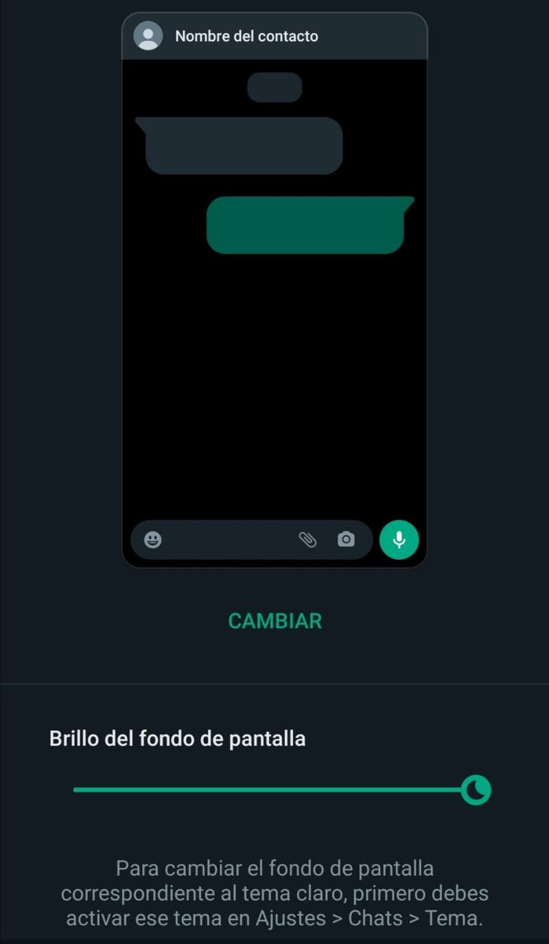 • Allí aparecerá una ventana de conversación tipo y una barra en la que se podrá configurar el modo superoscuro según lo que quiera el usuario.