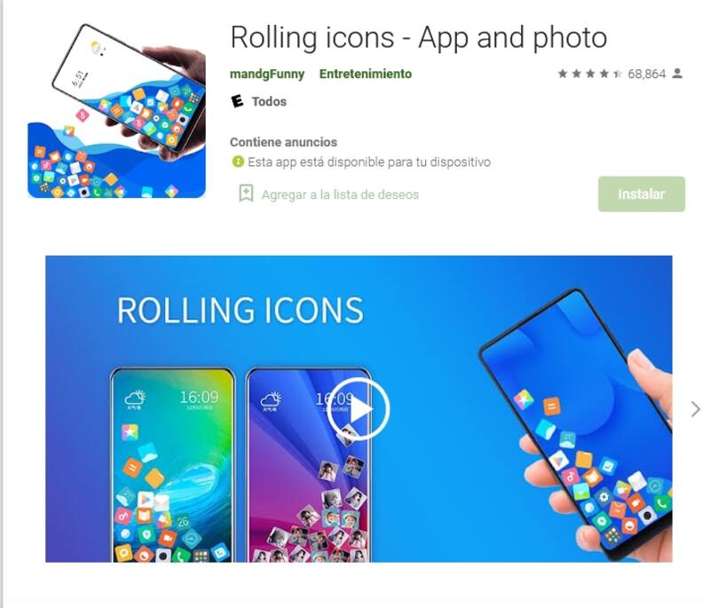 • Ir a Google Play Store y buscar la app "Rolling icons - App and photo", la cual debe ser descargada en el smartphone Android.
