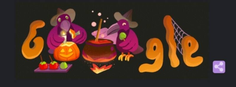 Con un colorido Doodle, el buscador festejó Halloween con variados elementos como el uso de la letra O, la cual es una calabaza transformada en una lámpara y un cuervo morado insertando la vela en ella.