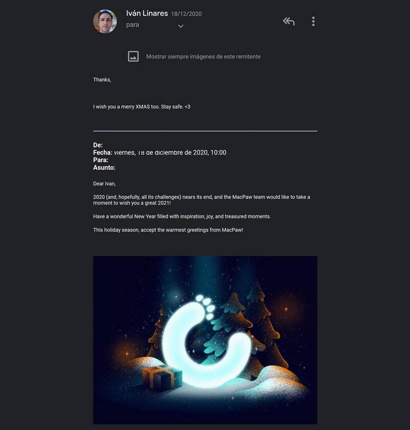 - Al encontrar el correo respondido, estará el mensaje borrado en forma de cita.