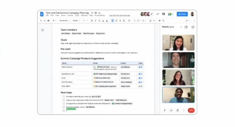 En Google I/O se anunciaron las sugerencias en la edición de los diversos textos, yendo hacia un lenguaje más inclusivo. Además, la gran noticia en la que Google Meet estará dentro de Google Docs, para así trabajar en tiempo real mientras hay una videollamada.