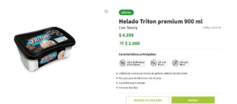 Además de ello, otra de las ofertas insólitas fue lo que encontraron otros usuarios a través de Internet, en la que el mismo supermercado ofreció siete casatas Helado Tritón Premium 900 ml $2.000, promoción que también se agotó a los minutos de ser publicada en la web.