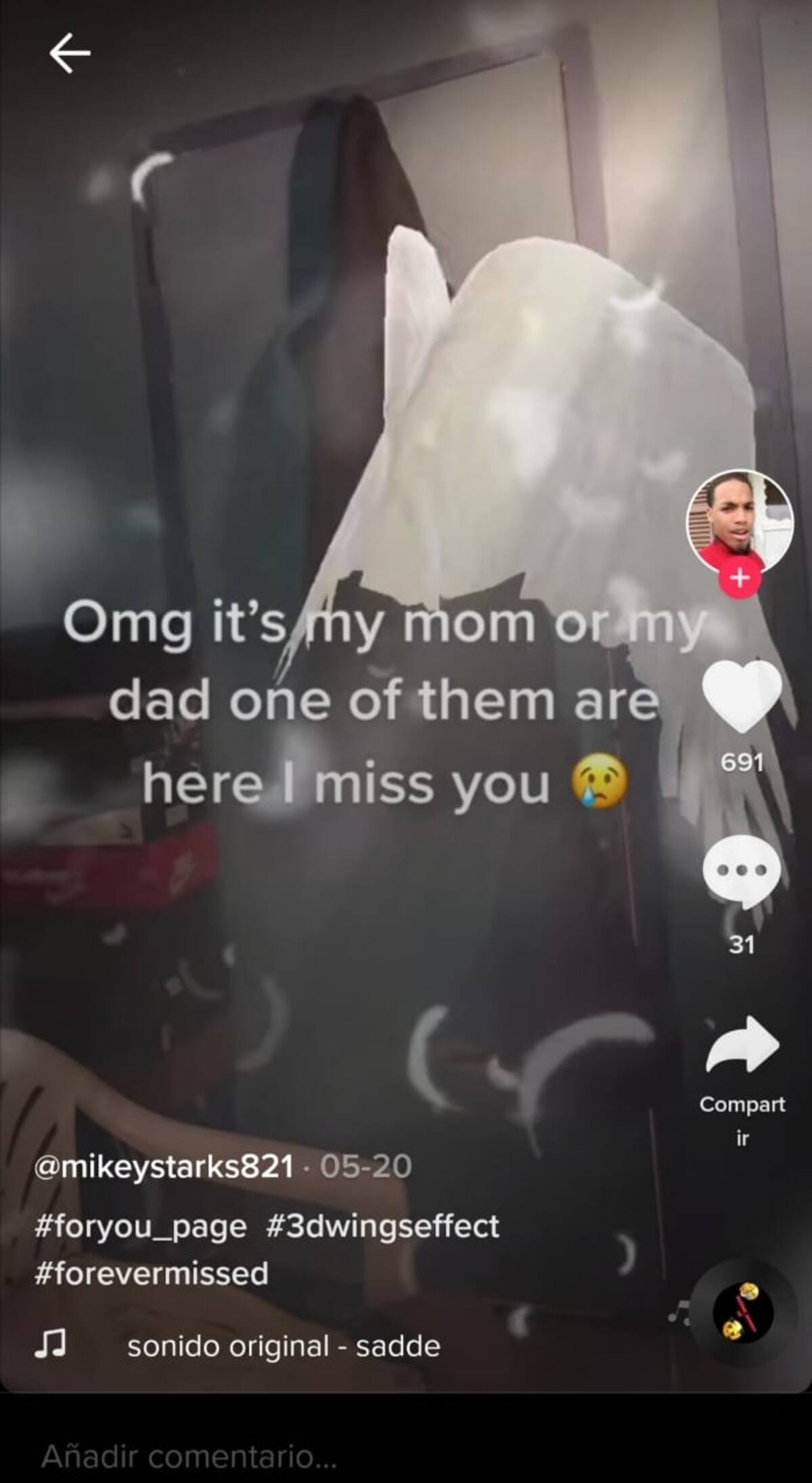Al buscar 3D Wings en TikTok, aparecerán diversos videos, al hacer click en uno, el video no tendrá el nombre del filtro usado. Eso es porque no está disponible en Chile, por lo que se debe descargar de otra forma.