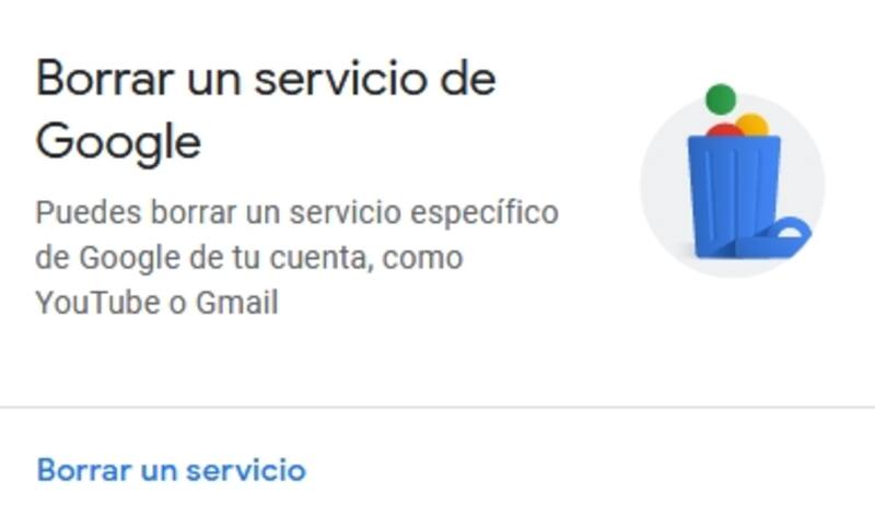 - Tras ello, se encuentra la opción "Eliminar un servicio o su cuenta".