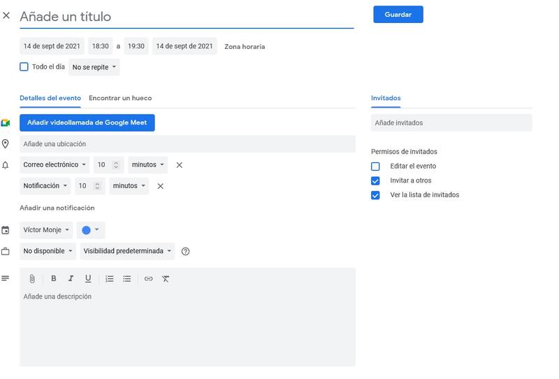 Programa la realización de una videollamada de Gmail a través de Google Calendar