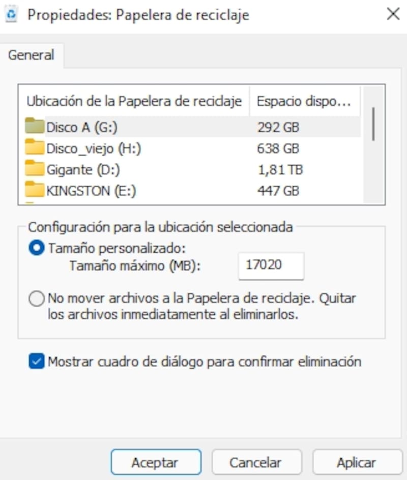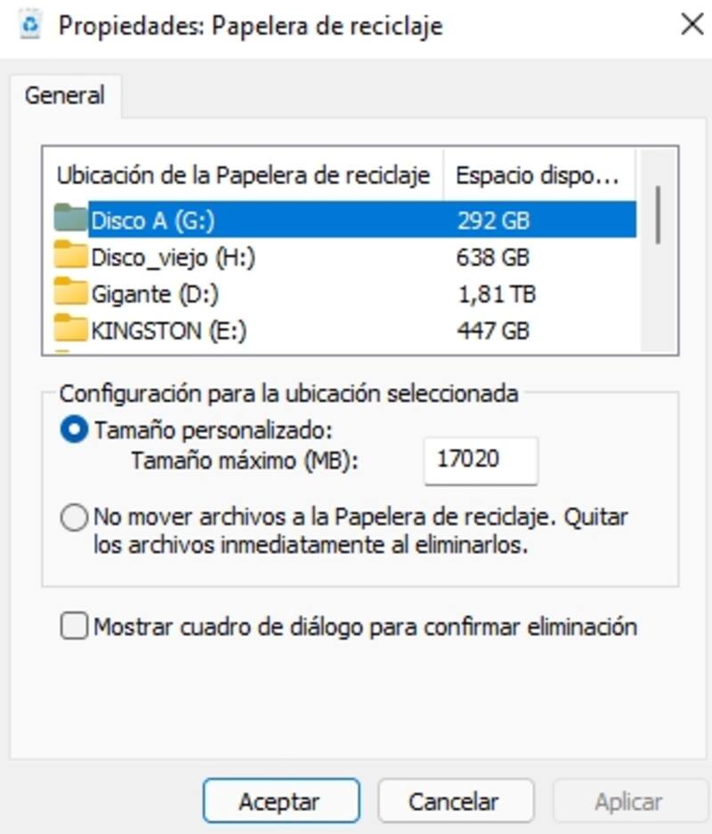La misma papelera de reciclaje tiene un límite en su alojamiento de archivos, ya que se configura según las unidades de disco que tenga el computador en cuestión. De hecho, a medida que se llena la capacidad de la plataforma, Windows 11 comenzará a eliminar los archivos más antiguos para liberar espacio y así lograr un buen funcionamiento.
