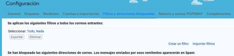- En aquel punto, clickear en filtros y luego direcciones bloqueadas.