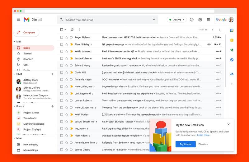 Estos cambios que fueron anunciados durante el mes pasado son varios, como la visual en el servicio, la cual estará por defecto a partir de abril de 2022. En el caso de lo nuevo, se podrá ver la importancia de "Meet", "Rooms", "Chat" y los mismos correos electrónicos, todo en la pantalla del lado izquierdo de la foto que se verá a continuación.