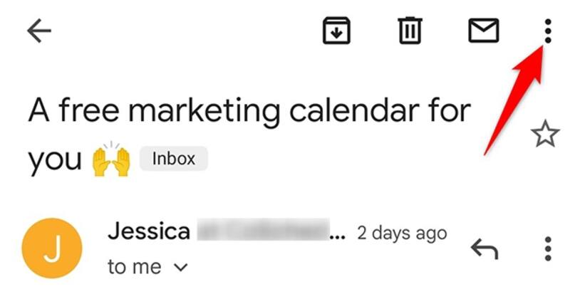 - Al abrir el mail, tocar los tres puntos verticales que aparecerán en la parte superior del correo electrónico.