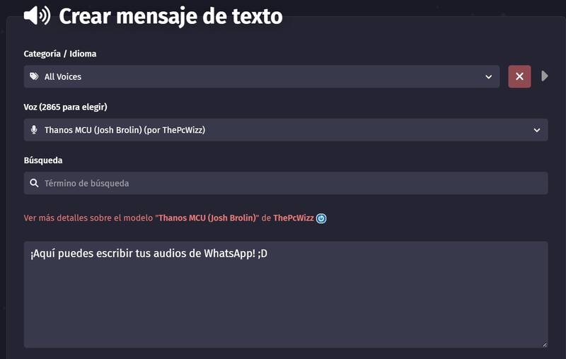La página para poder mandar audios de WhatsApp con la voz de Thanos se llama FakeYou, un juego de palabras con la popular grosería y el adjetivo "falso", dado que es un programa que imita de increíble manera distintos tonos.