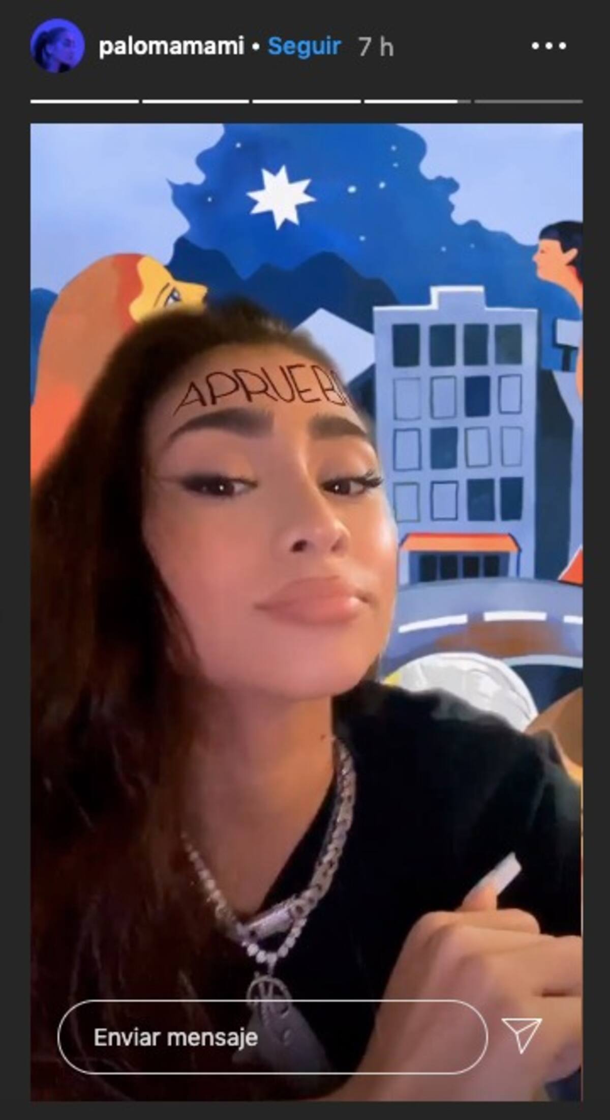 A través de sus historias de Instagram, la interprete de "No te enamores", se grabó con la palabra "apruebo" en la frente y detrás se podía escuchar una canción a favor de esta postura.