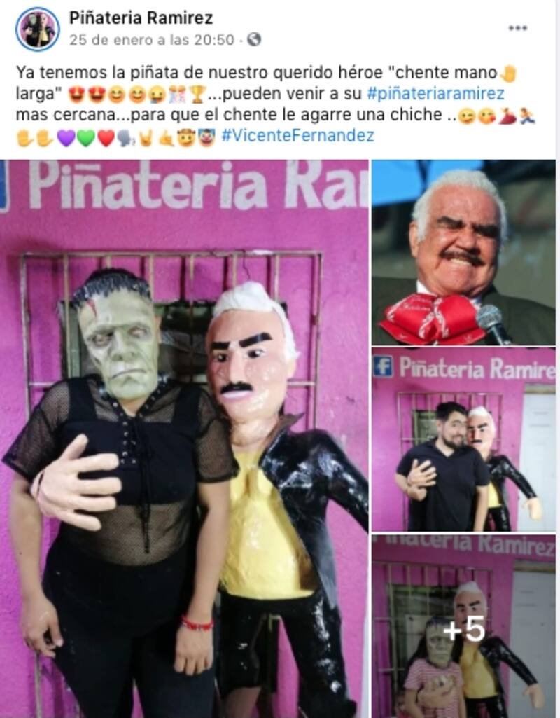 Este suceso provocó que la Pinatería Ramírez lo usara de pretexto para inmortalizar al cantante mexicano, en su pose de 'mano larga' El muñeco realizado por este negocio muestra al cantante con su cabellera canosa y su bigote negro, vistiendo una chamarra, pantalón oscuro y botas.
