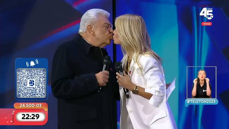 El cierre de la Teletón ha tenido varias sorpresas, pues parece que mientras más pasan los años más los animadores se atreven a hacer más cosas distintas, en este caso Cecilia Bolocco y Don Francisco protagonizaron un segmento del programa y cedieron de forma casi inmediata al pedido de beso del público.