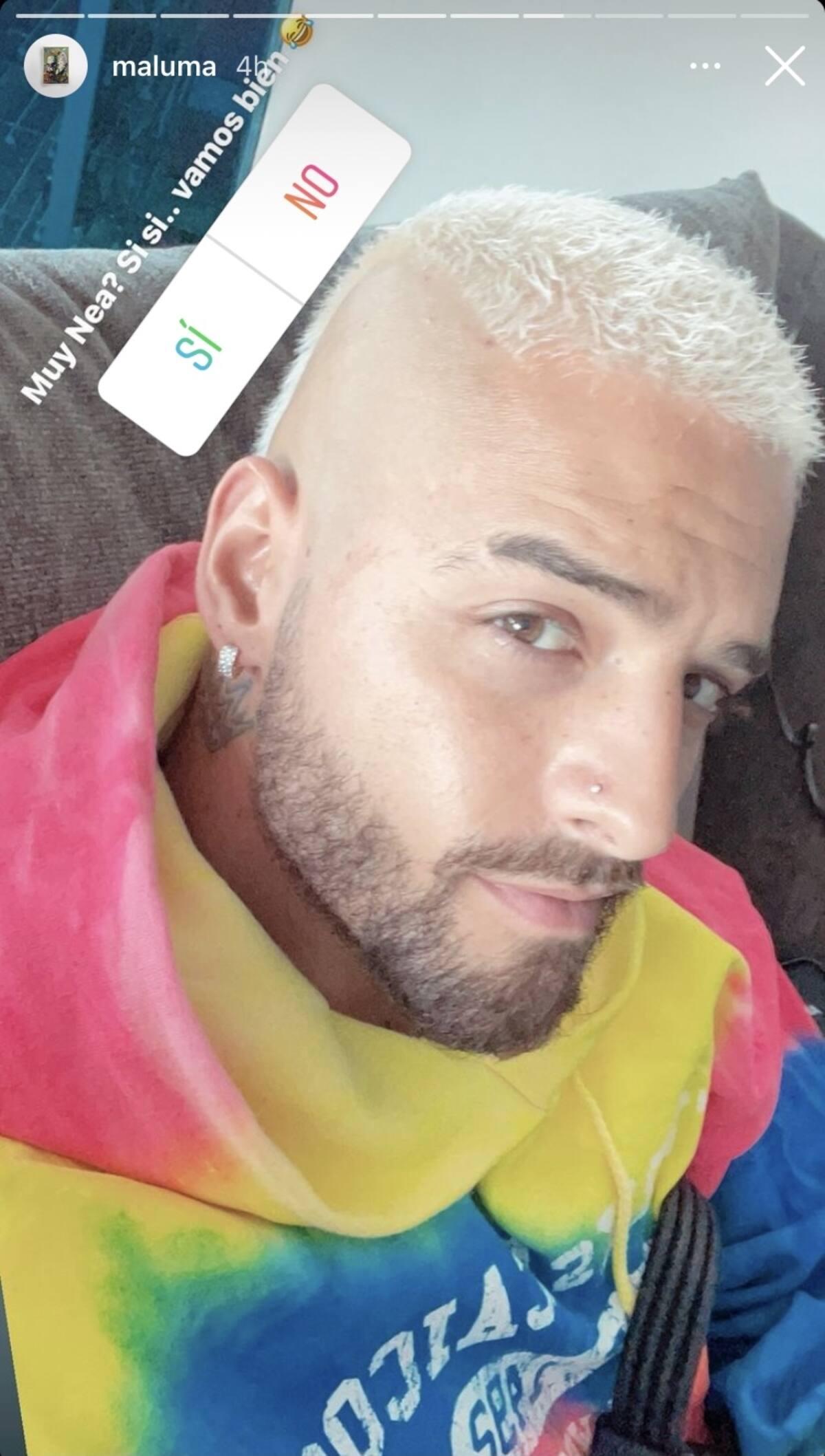 Maluma suele compartir en sus redes sociales parte de su vida diaria. Además, el cantante colombiano ha cambiado su look varias veces, variando cada cierto tiempo en el color de su pelo, el cual ha pasado por el color verde, rosado, café, negro y rubio. Ahora nuevamente lo cambió, pero esta vez a color totalmente blanco.