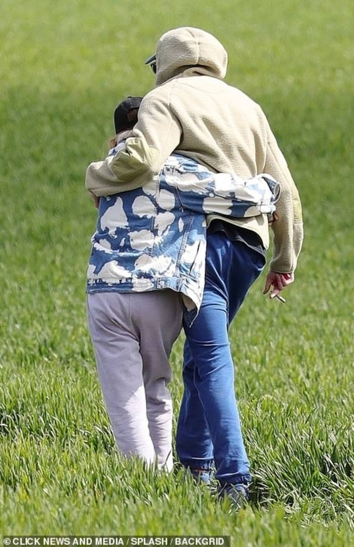 Ambos demostraron su afecto abrazándose mientras caminaban. La estrella de la serie "Bridgerton" optó por un look casual, ya que lucía una chaqueta de mezclilla con efecto tie-dye con cuello de piel, combinada con un par de pantalones de chandal gris y una gorra.