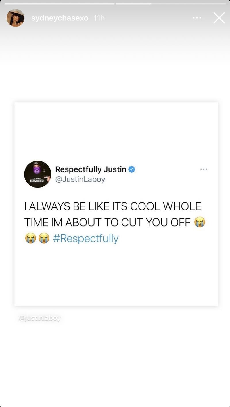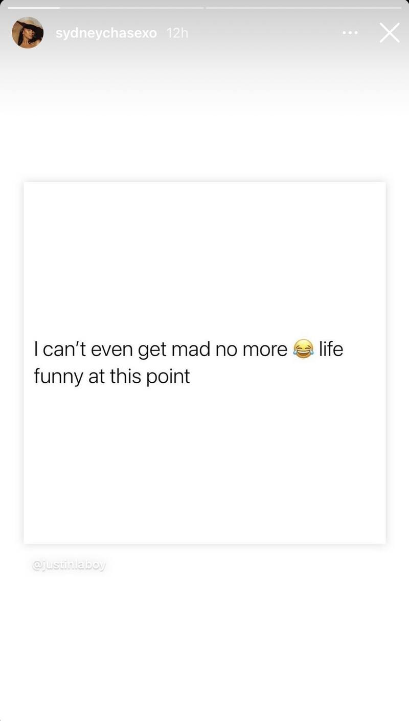 Sydney Chase compartió un mensaje poco después de que se revelara que Tristan Thompson y Khloé Kardashian se habían separado nuevamente. La modelo de Instagram, que supuestamente tuvo una aventura con el deportista el año pasado, volvió a publicar un mensaje que decía: "Ya no puedo enojarme más. La vida es divertida en este momento", seguido del emoji de risa y llanto.
