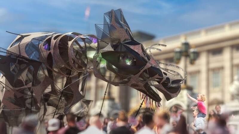 Un dragón gigante, del tamaño de un autobús icónico de Londres, será la pieza central de una celebración de carnaval de los 70 años de la reina Isabel en el trono. Con alas que se extienden desde el Palacio de Buckingham, el dragón promete ser uno de los emblemas llamativos del Concurso del Jubileo de Platino que recorrerá Londres.