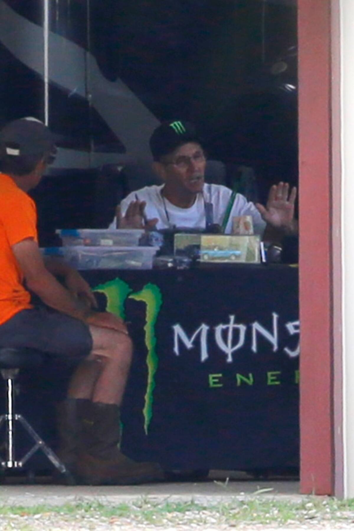 Jamie Spears, que parecía más débil que la última vez que se le vio en público, llevaba un sombrero de Monster Energy y usaba una nevera grande o una mesa cubierta con el logotipo de la empresa como escritorio improvisado. The New York Times informó la semana pasada que Jamie, quien vendió la casa cercana de la infancia de Britney por $275,000 en febrero, vive en una casa rodante que estaciona afuera de la instalación de almacenamiento, que alberga varios recuerdos de la carrera de su hija.