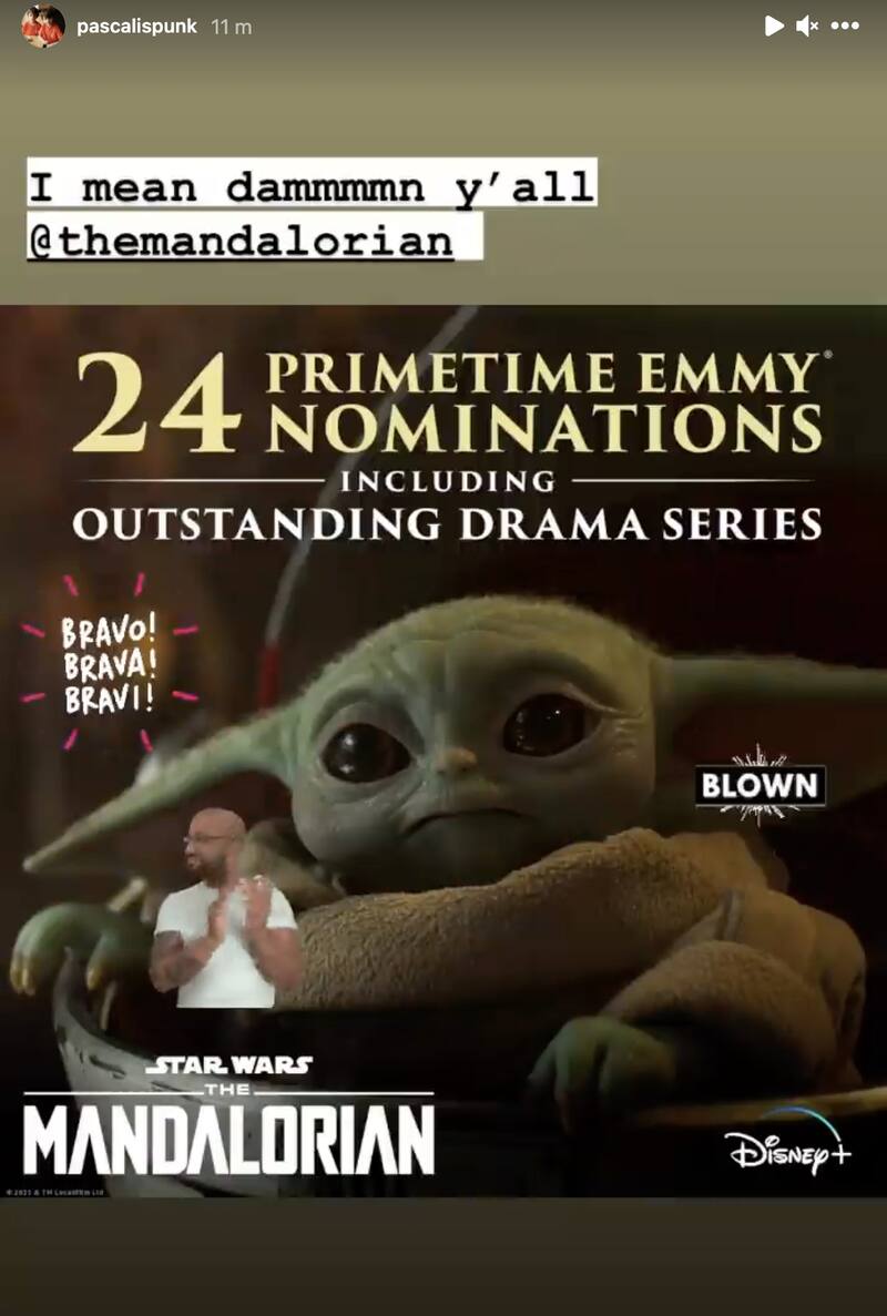 A eso de las 11:30 de la mañana, la Academia de Televisión de Estados Unidos anunció a los artistas y producciones nominadas a los Premios Emmy 2021. Pedro Pascal, protagonista de "The Mandalorian" no pudo evitar celebrar, ya que la serie lideró en la lista, junto a "The Crown", obteniendo 24 nominaciones.