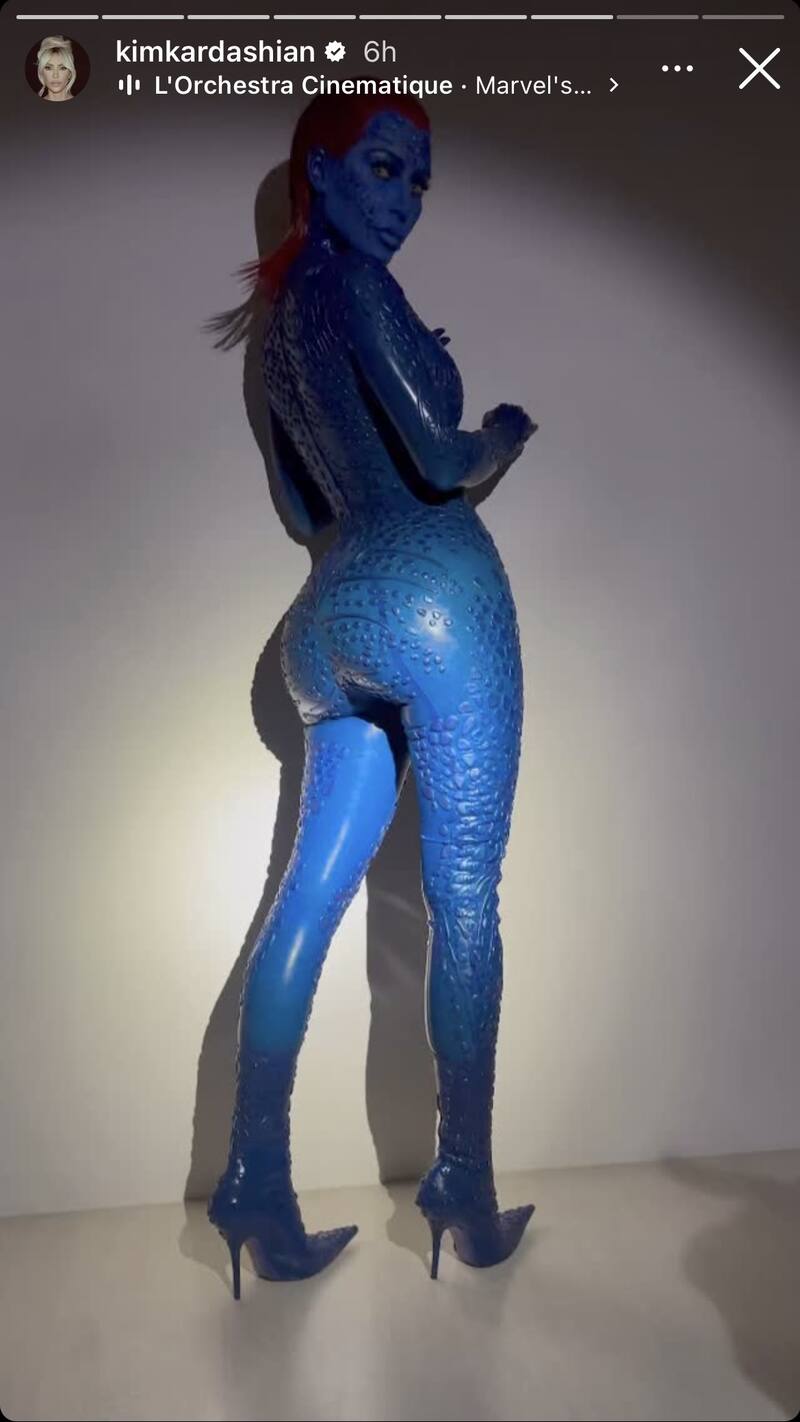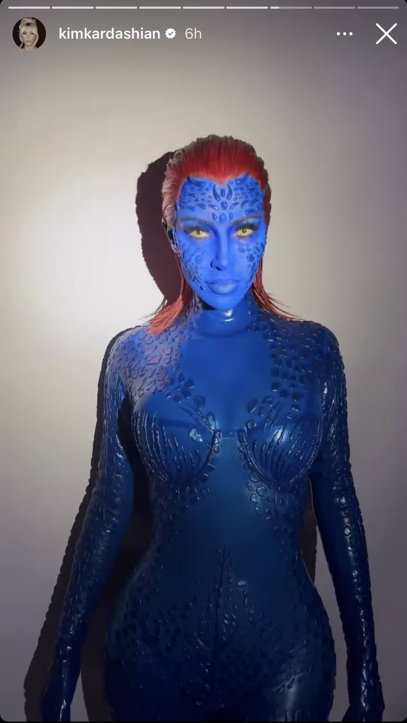 Kim Kardashian decoró su gran mansión para Halloween e hizo un tour para sus seguidores. Además, compartió en sus historias de Instagram su asombroso disfraz, el cual era del personaje Mystique de X-Men, un personaje ficticio que aparece en cómics estadounidenses publicados por Marvel Comics.