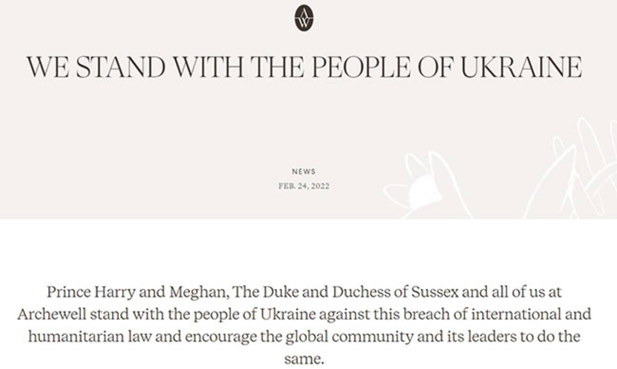 "Estamos con el pueblo ucraniano" se titula en el comunicado oficial firmado por los duques de Sussex, publicado a través de la página web de su fundación benéfica.