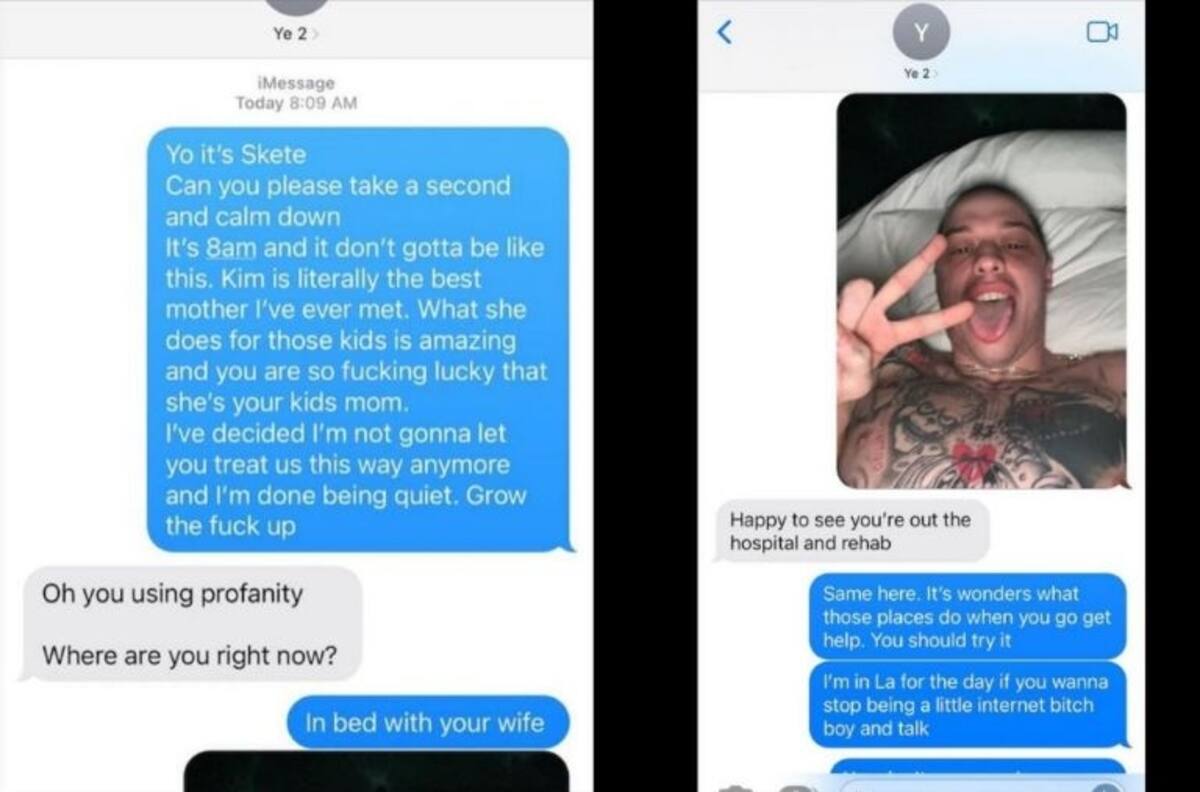 El drama entre Kanye West y el nuevo novio de su exesposa, Pete Davidson, continúa creciendo. En esta oportunidad, el rapero afirmó a través de su Instagram, que recibió mensajes de texto del comediante, alardeando de cómo se está acostando con Kim Kardashian.