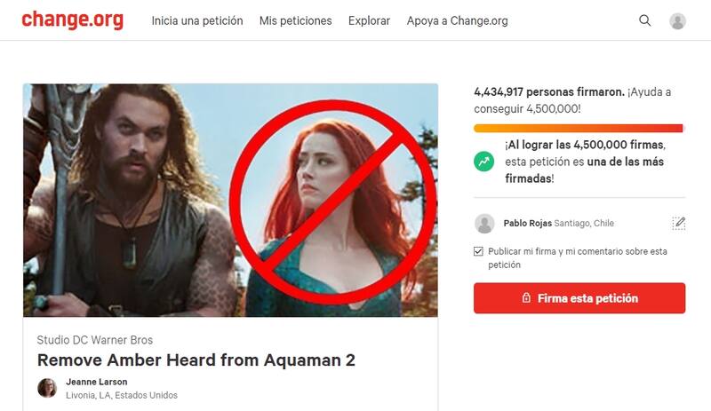 En esta petición se lee que "como Amber Heard es una conocida y probada abusadora doméstica, DC y Warner deben removerla de la segunda película de Aquaman, no deben ignorar el sufrimiento de sus víctimas ni romantizar el abuso".