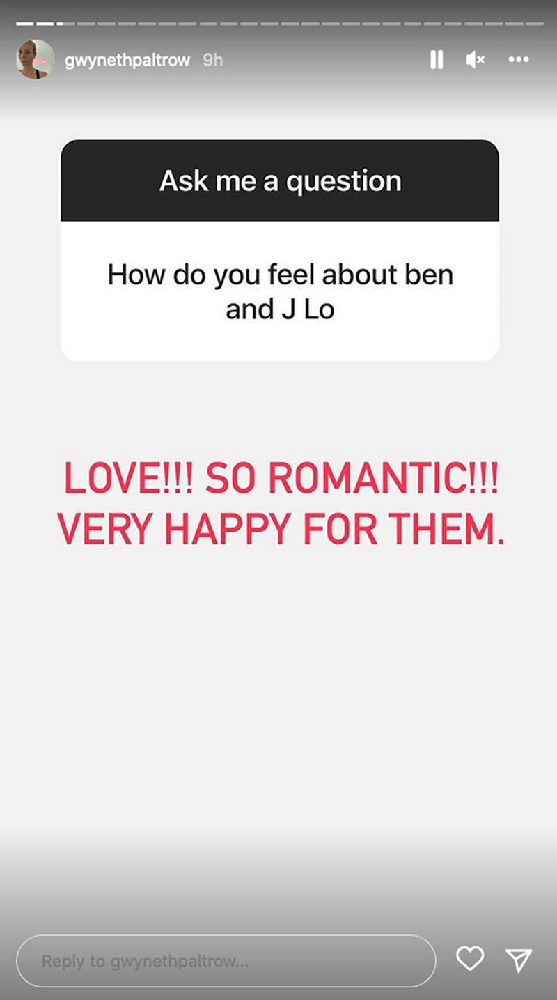 Revisa acá la publicación de Gwyneth Paltrow sobre Ben Affleck y Jennifer Lopez: