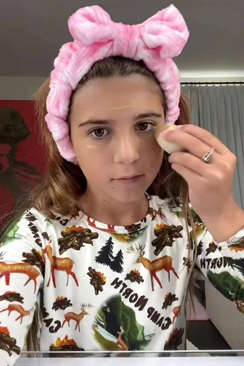 En el clip, Penelope primero se pone un cintillo rosado para asegurarse de que no se mancha cabello. Posteriormente, se puso suero en la piel para prepararla antes de aplicar el corrector debajo de los ojos, debajo de los pómulos y en la frente. La pequeña aparecía mezclando el producto con una esponja de maquillaje. Finalmente, completó el look con sombra de ojos, rímel y brillo de labios.