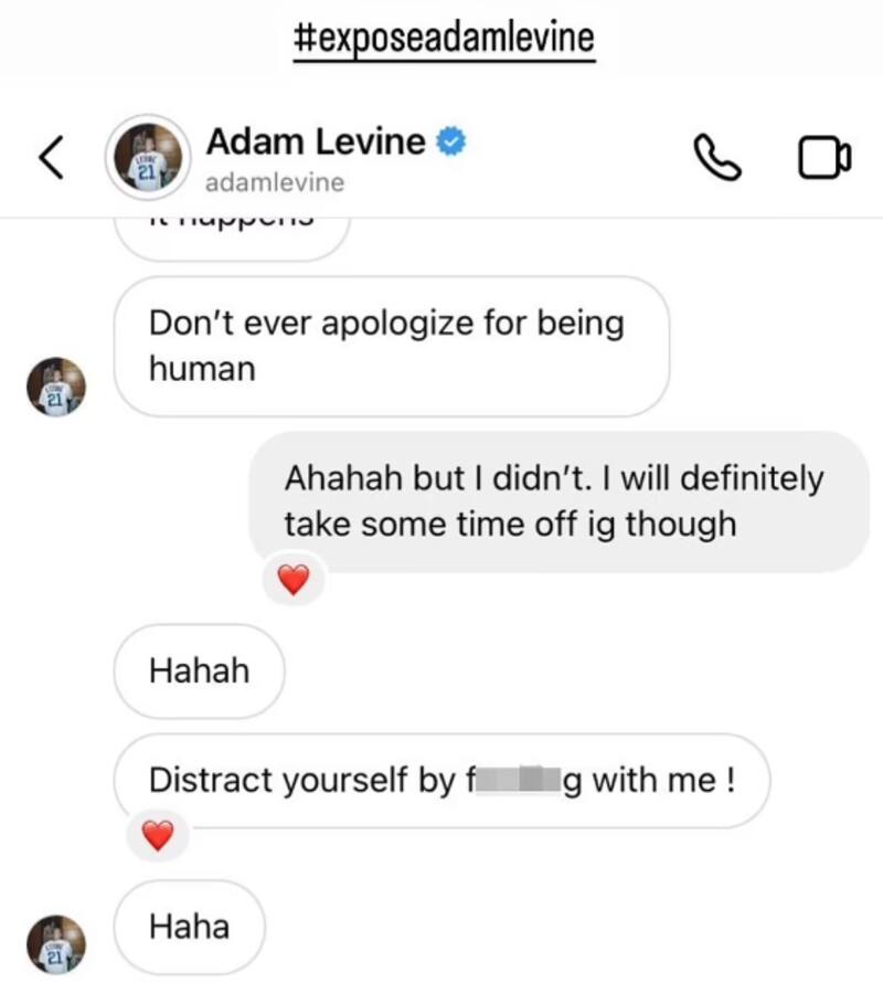 DailyMail reveló que se sumaron las denuncias con el hashtag de redes sociales "'#ExposeAdamLevine" (exponer a Adam Levine), donde revelaron los coquetos y obscenos mensajes que han recibido de parte del artista.