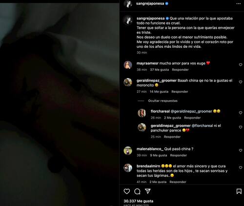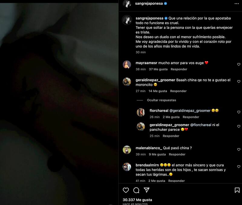 Rápidamente, los seguidores de la argentina la repletaron de comentarios, lamentando el quiebre entre ambos. Sin embargo, otros plantearon su duda sobre su anuncio, asegurando que es una estrategia para promocionar la próxima canción del cantante.