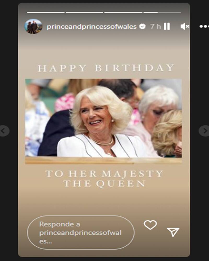 También los príncipes de Gales, William y Kate, han dedicado desde las stories de su cuenta de Instagram una felicitación “a Su Majestad la Reina”, usando una imagen de su reciente visita a Wimbledon junto a su hermana Annabel Elliot.