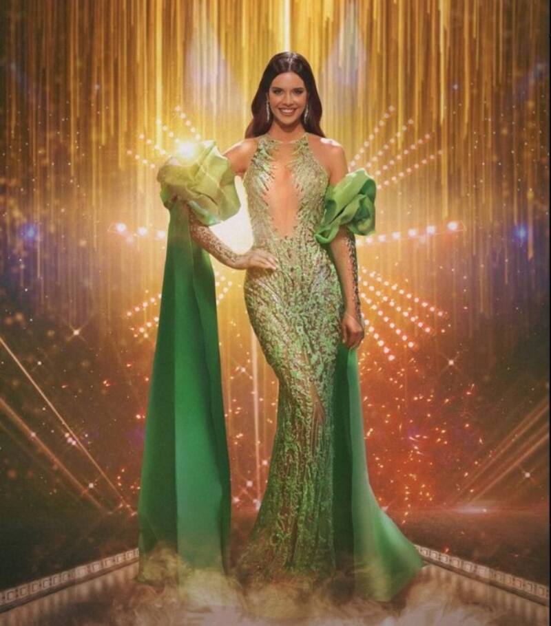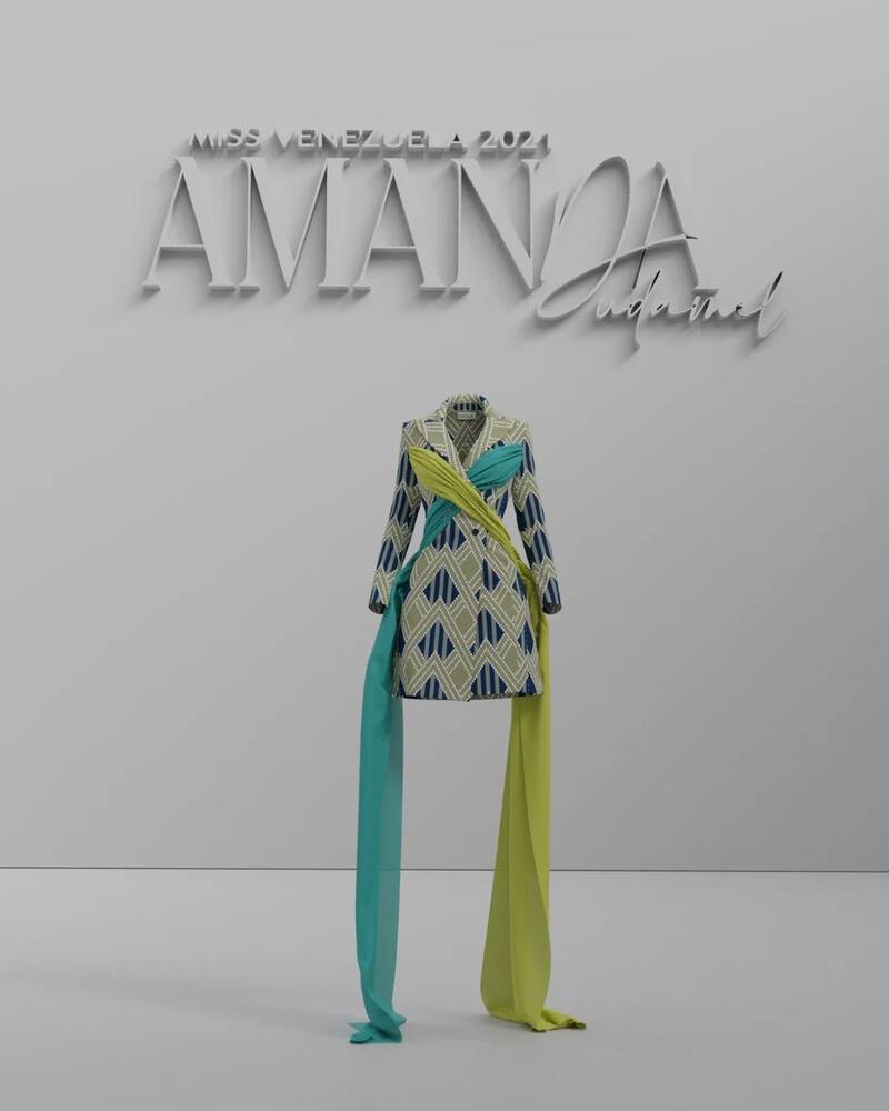 "Un diseño en color verde que representa la armonía, la calma y la naturalidad que nos transmite Amanda Dudamel, diseñado exclusivamente para esta preliminar", escribió en Instagram la cuenta de Miss Venezuela.