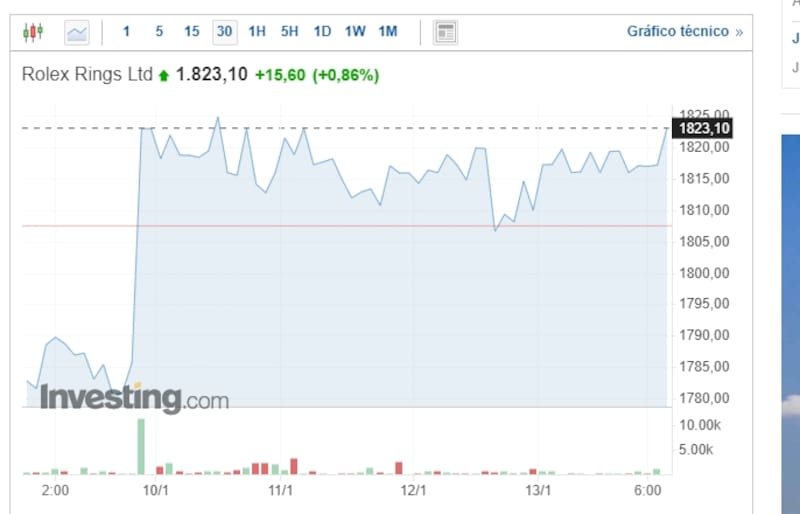 Caso contrario ocurrió con Rolex, que empezó la semana con 1.780 rupias, moneda en la que se miden sus acciones. Pero al final de la semana, y más con el estreno de la canción de Shakira, cerró con una fuerte alza, llegando a los 1.823.