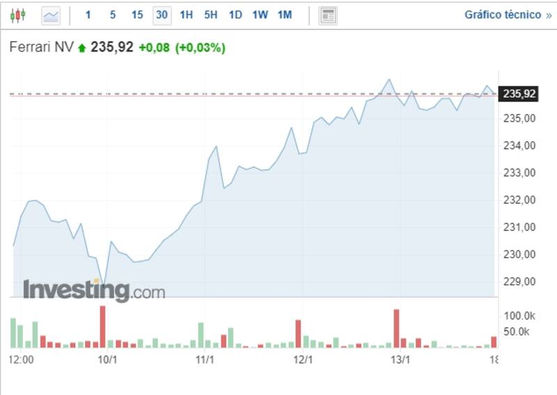 Mientras, en Ferrari celebraron con un alza en el mercado. 28 euros aproximadamente era el valor con el que abrieron la semana, para luego tener una fuerte subida tras el estreno de la canción, cerrando con 235,92.
