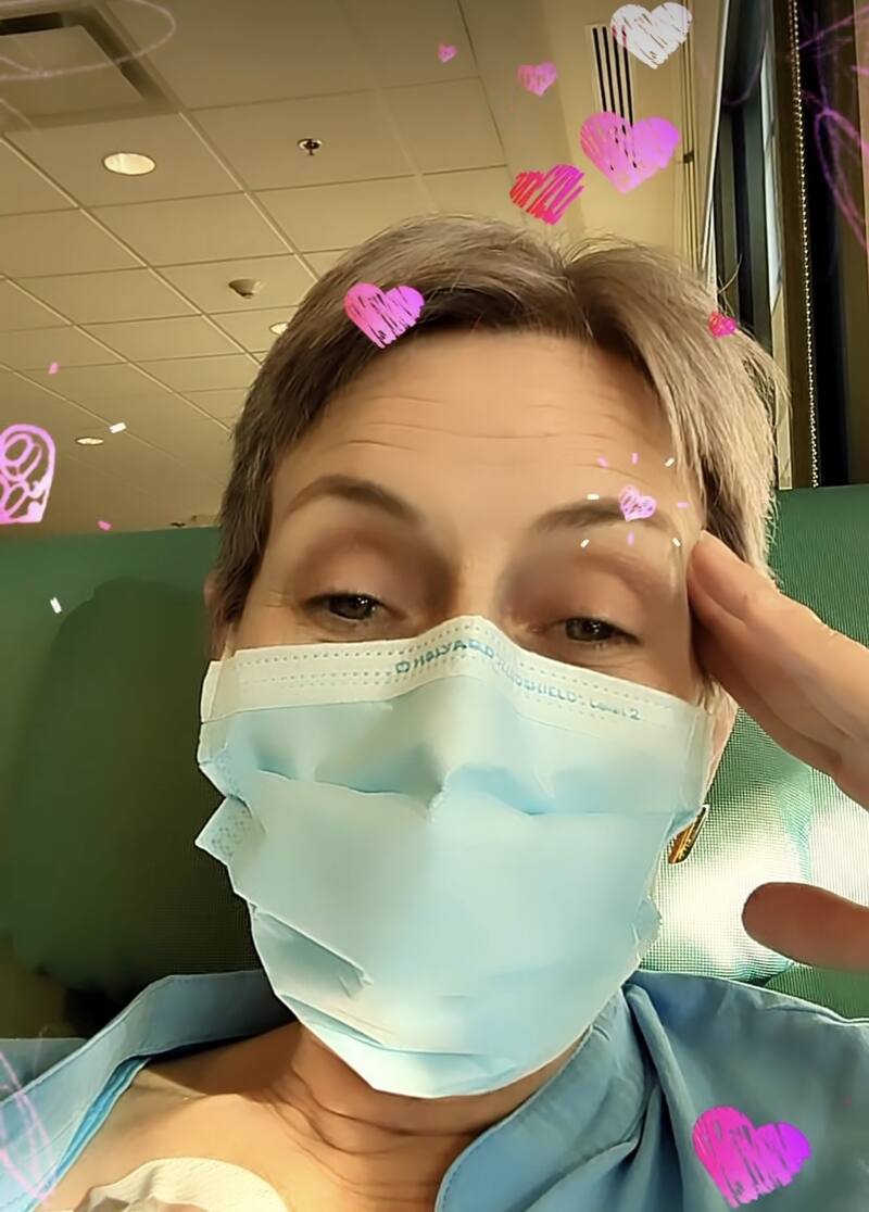 En el video en cuestión, la actriz se deja ver en medio de su primera instancia de tratamiento en la clínica, tapando su rostro con una mascarilla para cuidar su salud y con un catéter conectado a su pecho.