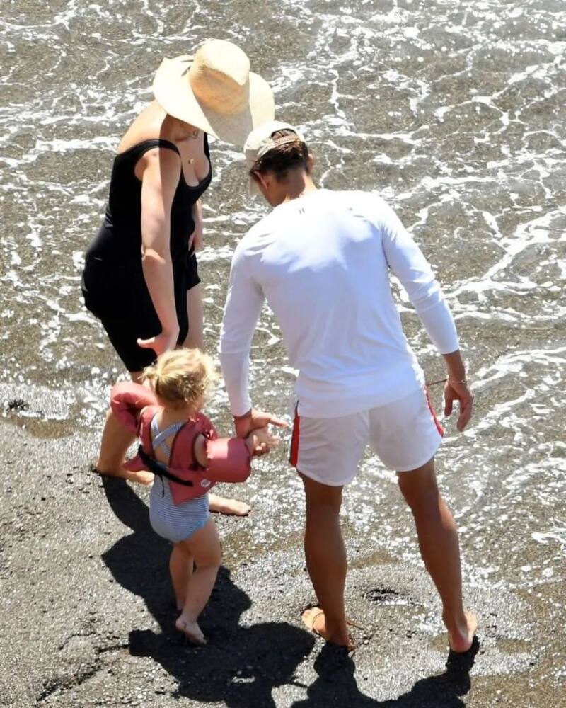 La niña estaba sentada junto a su padre, Orlando Bloom, quien también saludaba cuando las cámaras se dirigían hacia ellos.