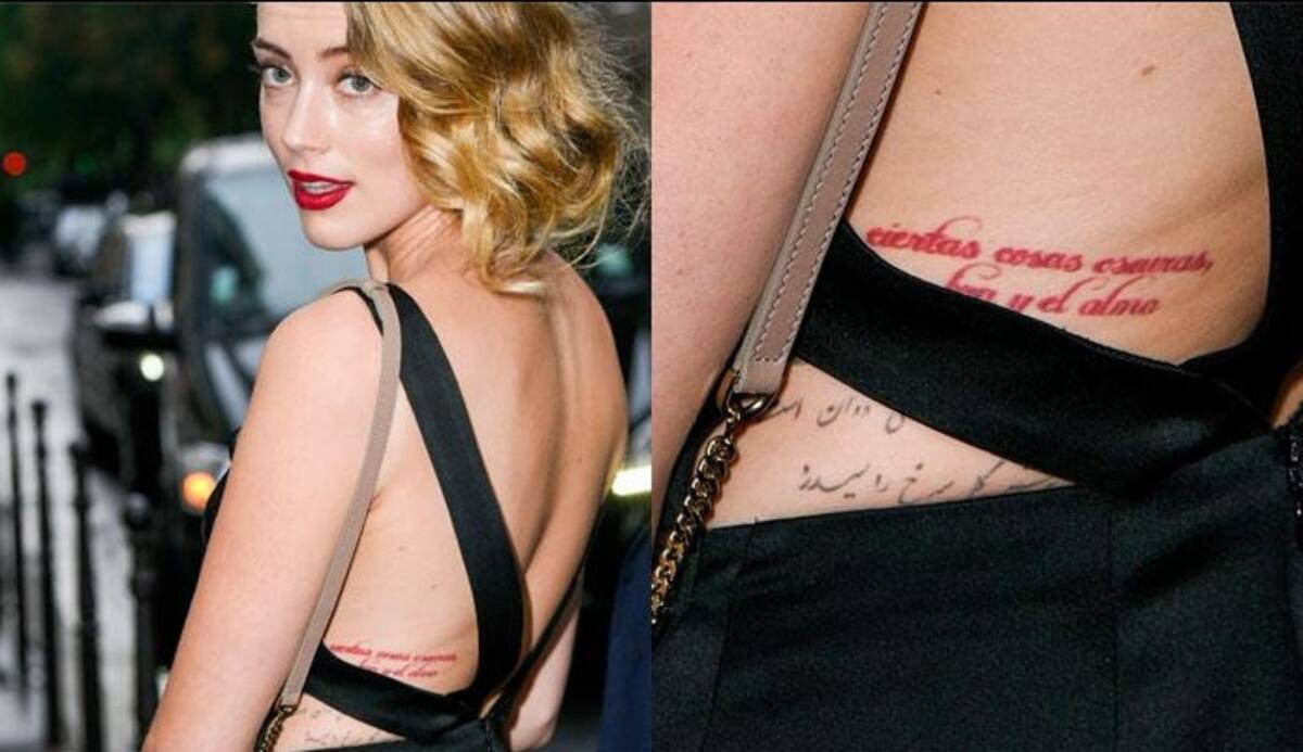 "Te amo como se aman ciertas cosas oscuras entre la sombra y el alma", dice en rojo el grabado, tatuaje que se vio por primera vez en una fiesta de Bulgari, durante la versión 2015 de la semana de la alta costura de París.