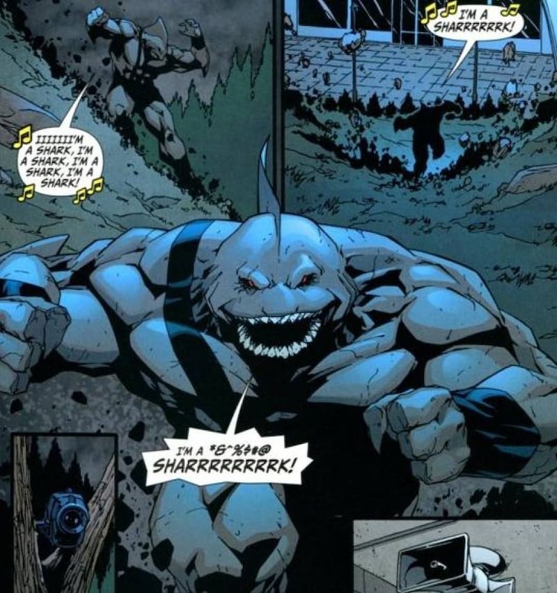 El Rey Tiburón llamado Nanaue es una criatura antropomórfica hijo del dios de todos los tiburones y de una madre humana. El actor Será interpretado por el actor Steeve Agee dará vida a este personaje nacido en Hawái, que en las viñetas suele tener el rol de líder de los de su especie. En una historia de las viñetas su sed de sangre fue tal que devoró a uno de sus compañeros de equipo.