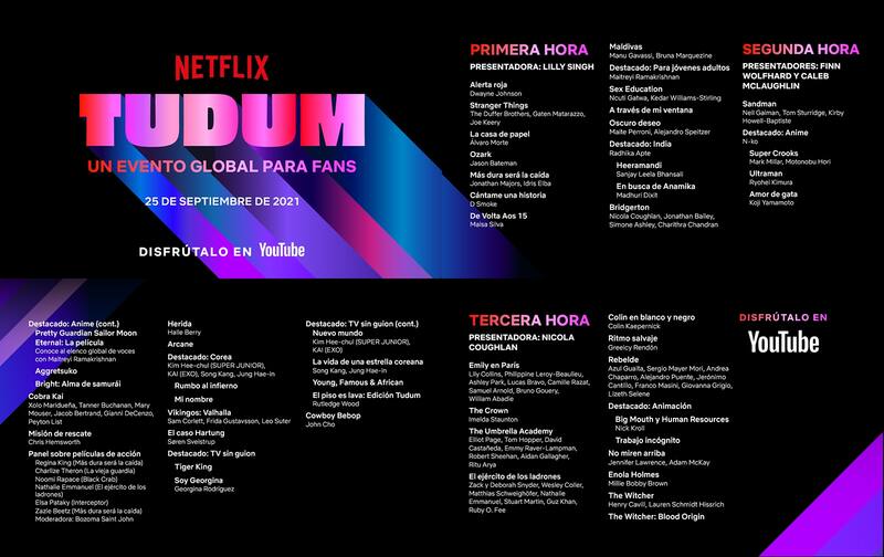 La cita con Netflix tendrá lugar este sábado 25 de septiembre a las 13:00 pm de Chile a través de las redes sociales de la firma, dado que será de carácter online a través de Youtube.
